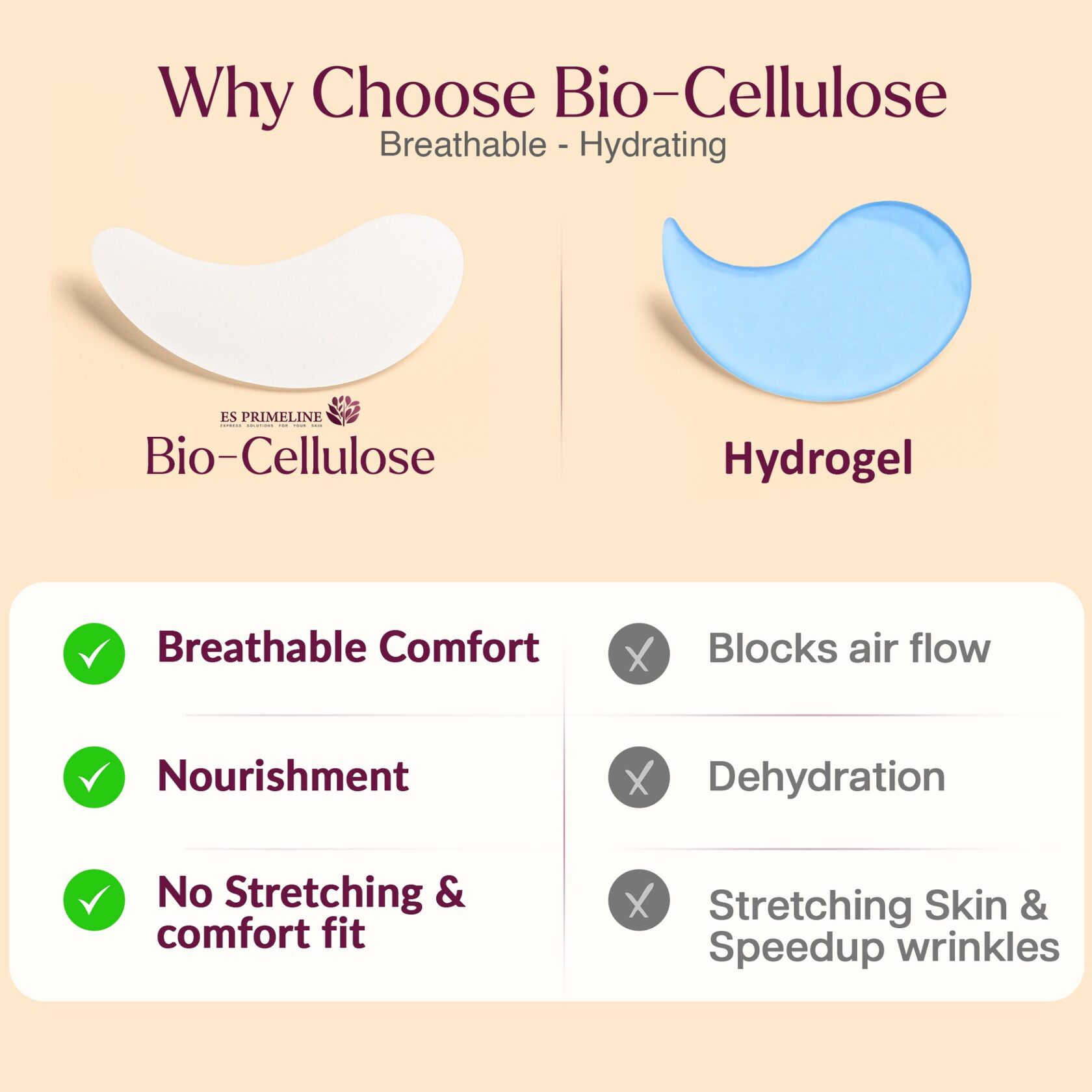 • ES PRIMELINE patches are made from breathable Bio Celluose unlike hydrogel patches skin moisture out, ant, and can the skin's protective barrier.
